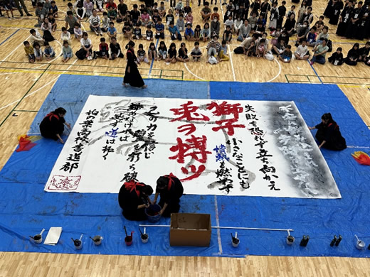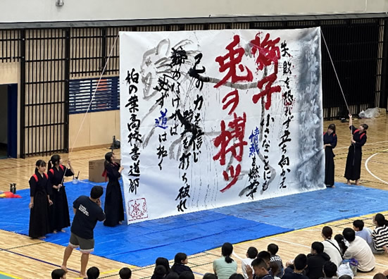 また、特別に柏の葉高校の書道部の生徒さんによる書道パフォーマンスをみんなで観ている様子もアップしました。